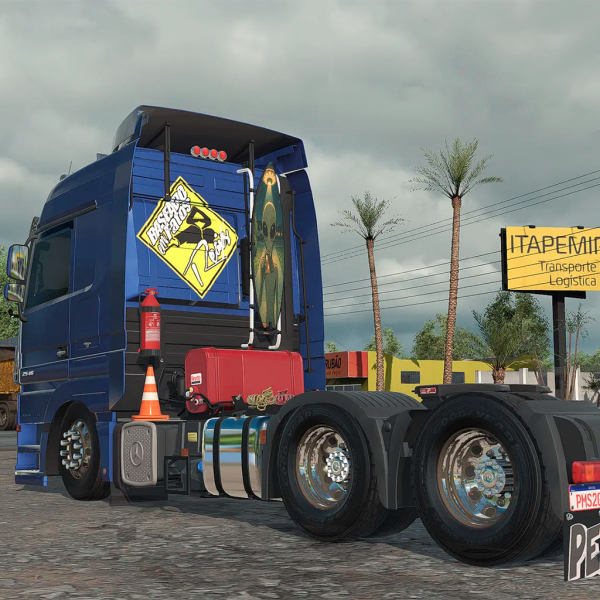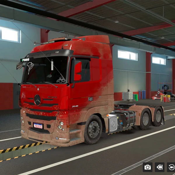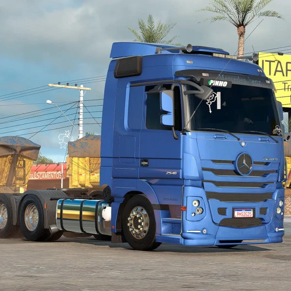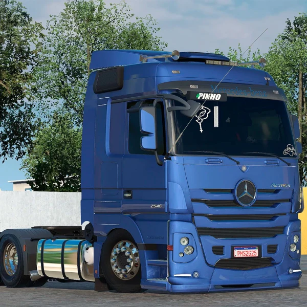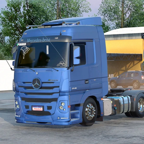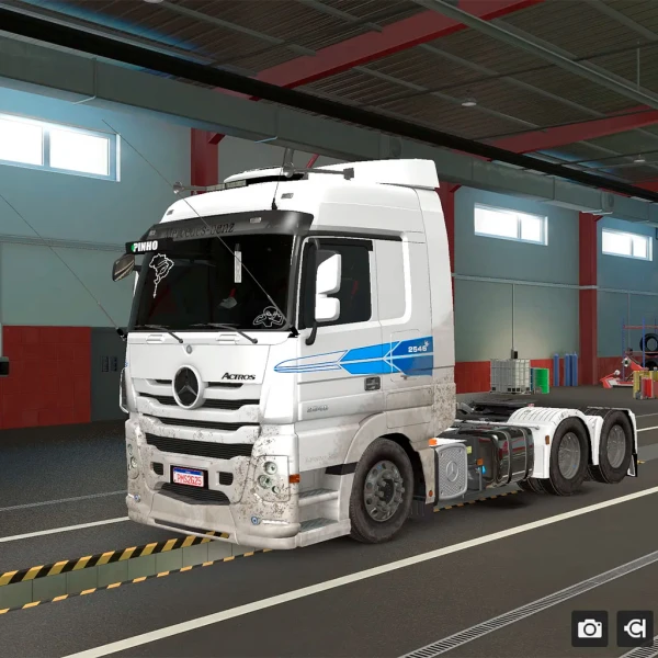 Mod MERCEDES ACTROS 2546 Completo com mais de 80 acessórios, pack de skin incluso, 2 variações de chassis (padrão e rebaixado), compatível com vários pack de som.